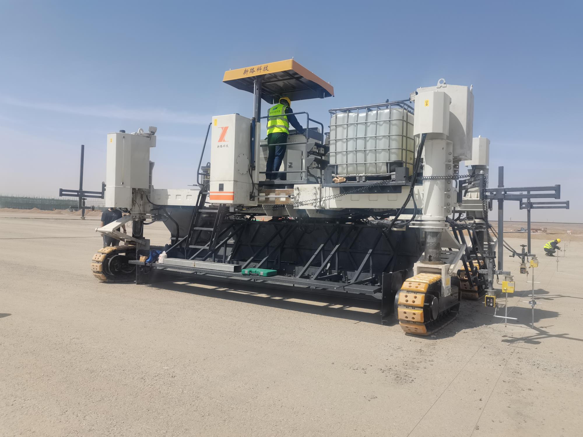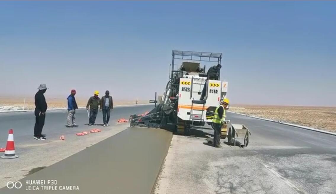 NC1300混凝土滑模攤鋪機在甘肅敦煌做的2米寬路肩
